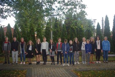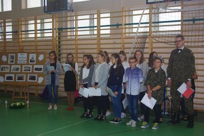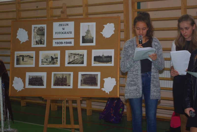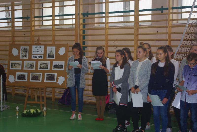 Dnia 6 października minęła 75 rocznica powieszenia, przez Niemców, 20-tu Polaków na rynku w Zieluniu. Uczniowie przygotowali krótki apel z tej okazji. Na uroczystości obecni byli goście - pani Romana Gietka, córka powieszonego Juliana Gołębiewskiego oraz pan Julian Gołębiewski, wnuk powieszonego. Uczniowie zapalili znicze i złożyli kwiaty na miejscu zbrodni.