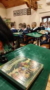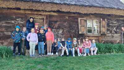 11 kwietnia klasa 1 oraz grupa 6-latków wyruszyli na wycieczkę do skansenu w Sierpcu. Dzieci zobaczyły w jakich warunkach żyli mieszkańcy wsi w XVIII, XIX i na początku XX wieku. Oprócz zwiedzania Muzeum Wsi Mazowieckiej uczniowie uczestniczyli w warsztatach. Jedna grupa wzięła udział w zajęciach dotyczących wycinania, druga udała się na lekcje kaligrafii. Wszyscy bardzo dobrze się bawili.
