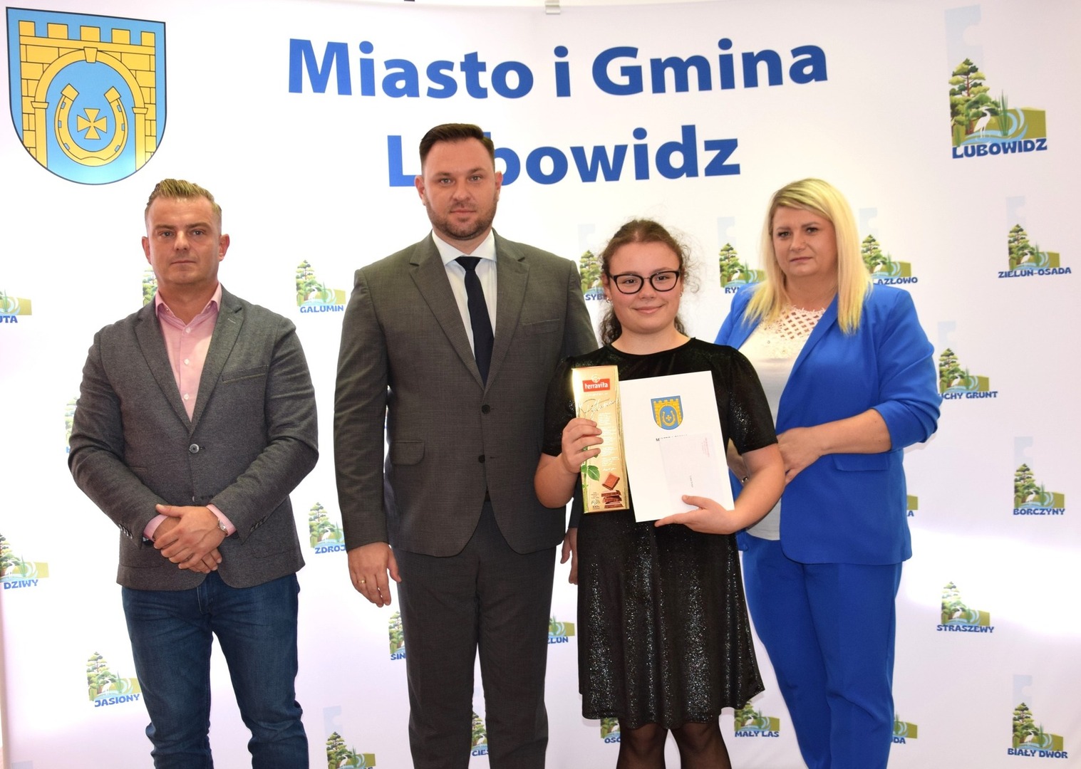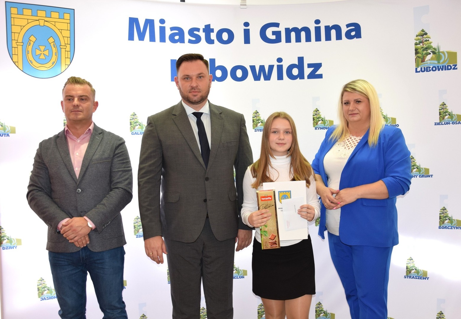 Burmistrz Miasta i Gminy Lubowidz Pan Jarosław Czapliński 17 paxdziernika 2024 roku wręczył naszym uczniom stypendia: